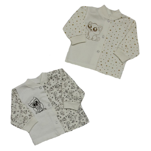 Кофточка с длинным рукавом, спереди на кнопочках, в виде украшения нанесён на одну полочку спереди принт.